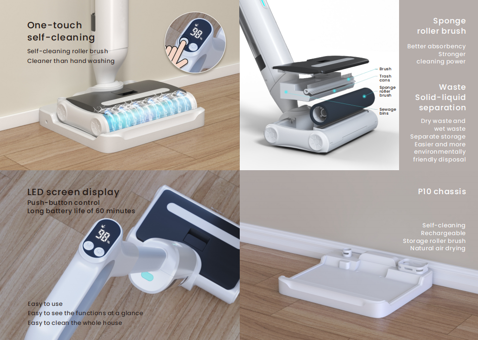 P10 Cordless handheld cleaner with mopping and washing